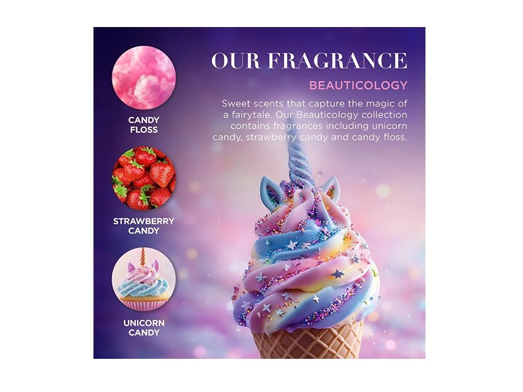 Sada obsahuje: Sprchový krém (Shower Cream) 100 ml Pěna do koupele (Bath Bubbles) 100 ml Krásná taštička s jednorožcem obsahuje sprchový gel a pěnu do koupele, které obohatí každodenní mycí rituál koktejlem sladkých vůní. Vtáhnou děti i mladistvé do prostředí cukrárny. Zábava, jednorožci, vůně cukrovinek a pocit štěstí zahalí pokožku těla a dodají mytí to správné kouzlo. Produkty vytváří bohatou, krémovou pěnu, jsou šetrné k pokožce a zanechávají ji hebkou a vláčnou na dotek. Plstěnou mini kabelku s jednorožcem využije každá malá slečna i na další nezbytnosti nebo také jako stylový doplněk k outfitu. Kolekce Beauticology je hravá, zábavná, kouzelná a barevná. Design s holografickými detaily, veselými barvami a galaktickými motivy tvoří společně s rozmanitými vůněmi cukrovinek perfektní kolekci pro malé či větší milovníky jednorožců! Vlastnosti:• s dlouhotrvající vůní cukrovinek• zanechá jemnou a hebkou pokožku• vytváří bohatou, krémovou pěnu• v plstěné kabelce s motivem jednorožce Použití: Sprchový krém: Naneste na vlhkou pokožku, napěňte a důkladně opláchněte.Pěna do koupele: Pod proudem teplé vody vlijte do vodní lázně. Doplňující informace:• Vegan & Cruelty Free