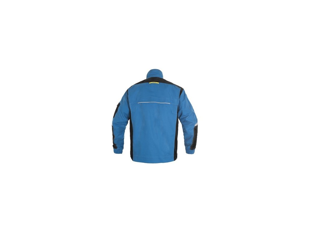 Pánská montérková blůza - zkrácená varianta na výšku 170-176 cm. Strečová tkanina umožňující volný pohyb, ramena vyztužena 600D polyesterem, rukávy s nastavitelnou manžetou, kapsička s klopou na levém rukávu, kryté zapínání na zip a druky, náprsní kapsy - na druk a zip, boční kapsy na zip, regulovatelný pas, větrání na zádech, reflexní doplňky.