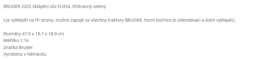 Bruder 2203 Sklápěcí vůz FLIEGL třístranný zelený