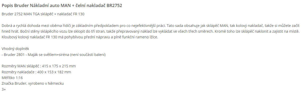 Bruder Nákladní auto MAN + čelní nakladač BR2752