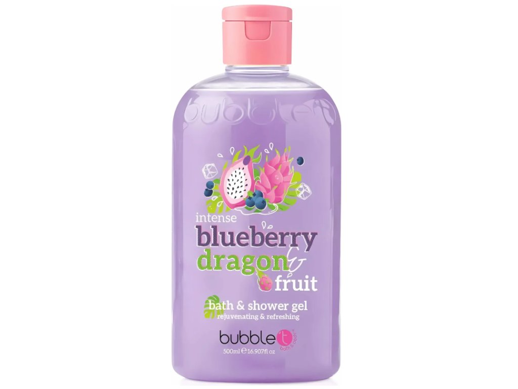 Sprchový gel BUBBLE T s vůní borůvek a dračího ovoce kombinuje dvě silné ovocné vůně a vytváří tak jedinečný zážitek z péče: sladké borůvky se setkávají s exotickým dračím ovocem – ideální pro každého, kdo si chce ve sprše dopřát trochu tropické lázeňské atmosféry. Veganské složení je šetrné k pokožce, ideální pro každodenní použití a díky své ovocné vůni vás jednoduše naladí.