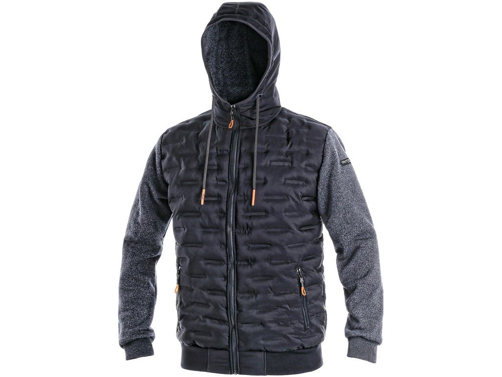 Pánská bunda z kombinovaných materiálů, zateplení v přední a zadní části bundy, kapuce napevno, 2 boční kapsy na zip, doplňky v kontrastních barvách, pas a rukávy ukončeny pružnou manžetou.