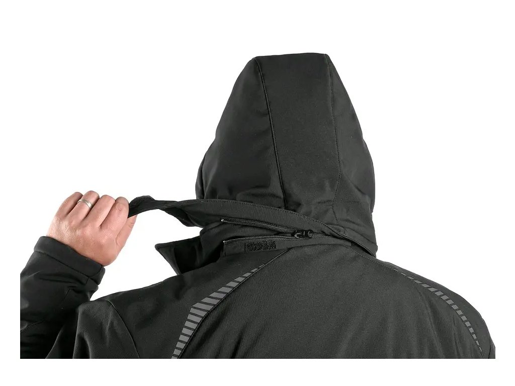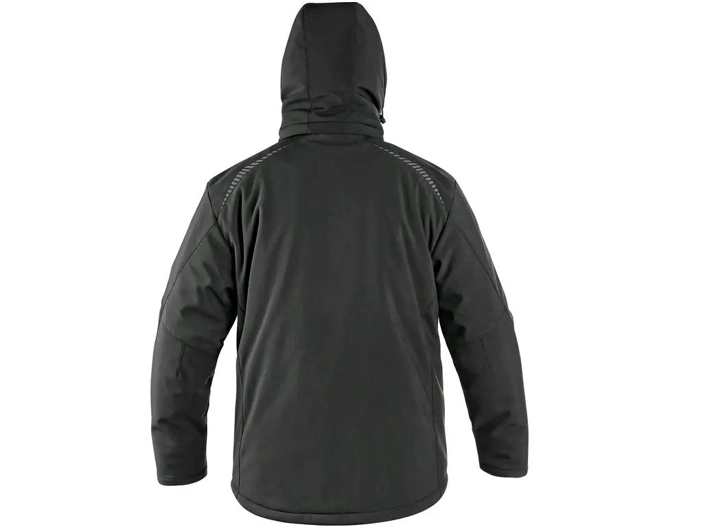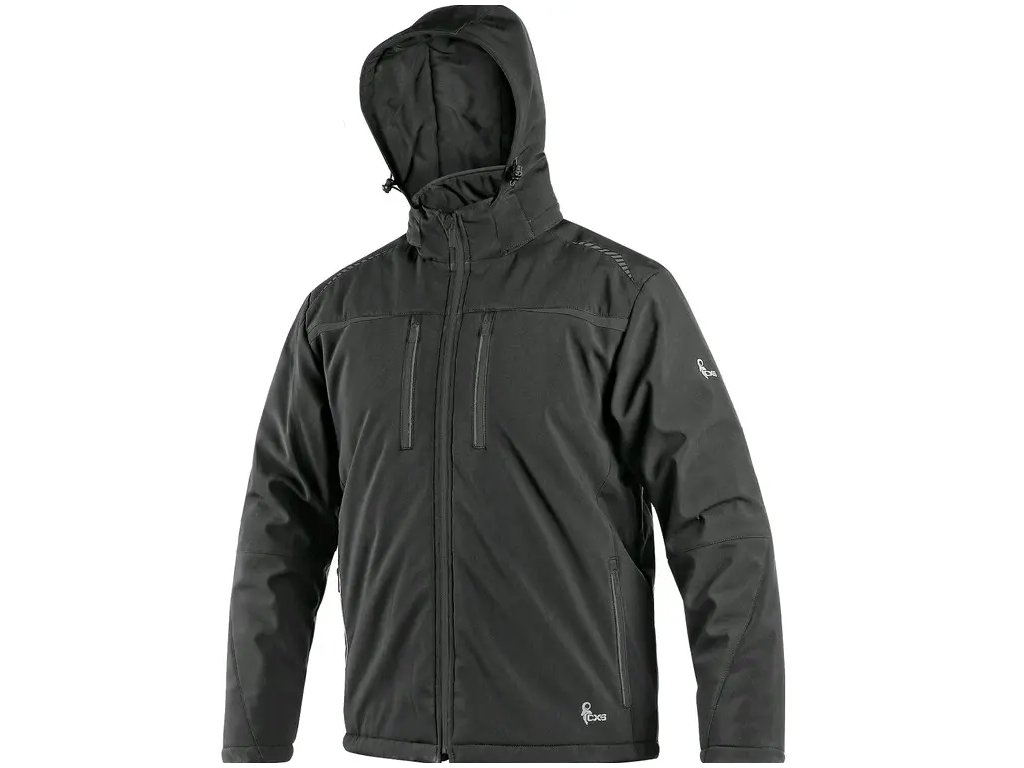 Pánská zateplená softshellová bunda s odepínací kapucí, odolná proti vodě a větru, zapínaní na zip, větrání v podpaží, náprsní kapsy na zip, v pravé kapse odnímatelné pouzdro na ID kartu, boční kapsy na zip, vnitřní kapsy, vnitřní manžety v rukávech, stahování v dolním okraji, reflexní doplňky, TPU membrána, vnitřní otvor na zip pro aplikaci výšivky. Odolnost materiálu proti průniku vody 8 000 mm mimo oblast švů, paropropustnost 3 000 g/m2/24h.