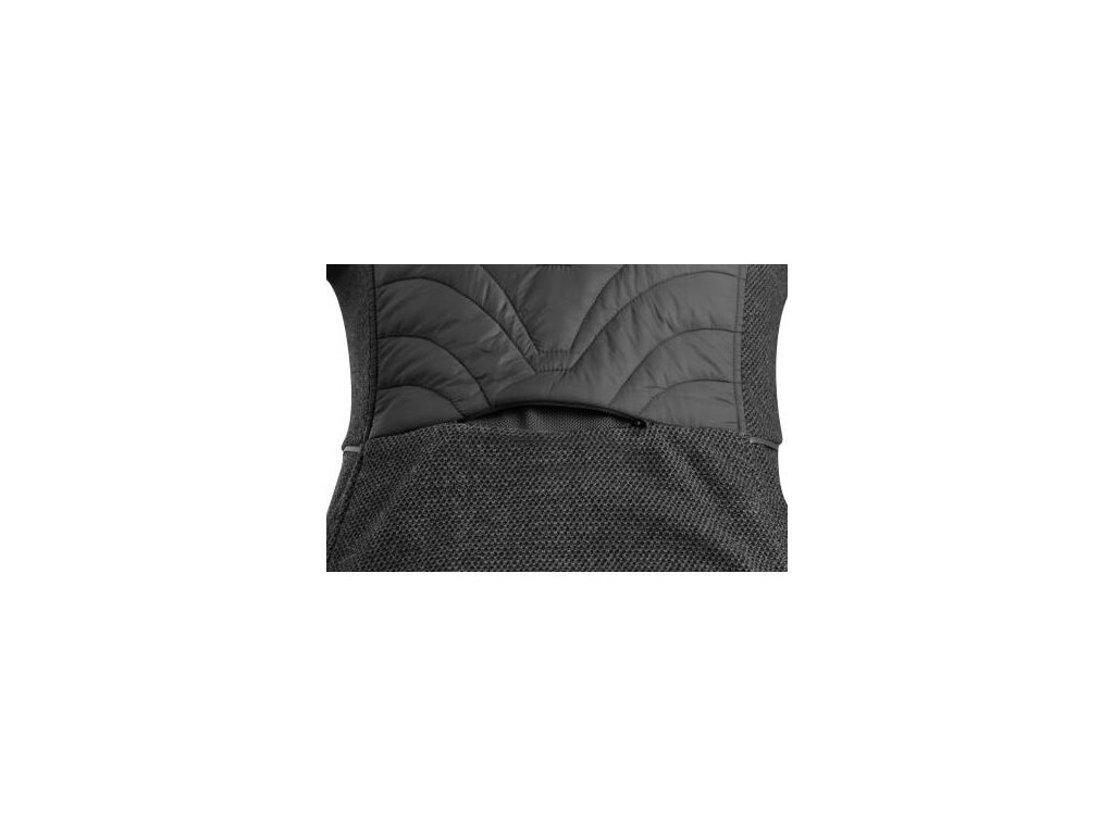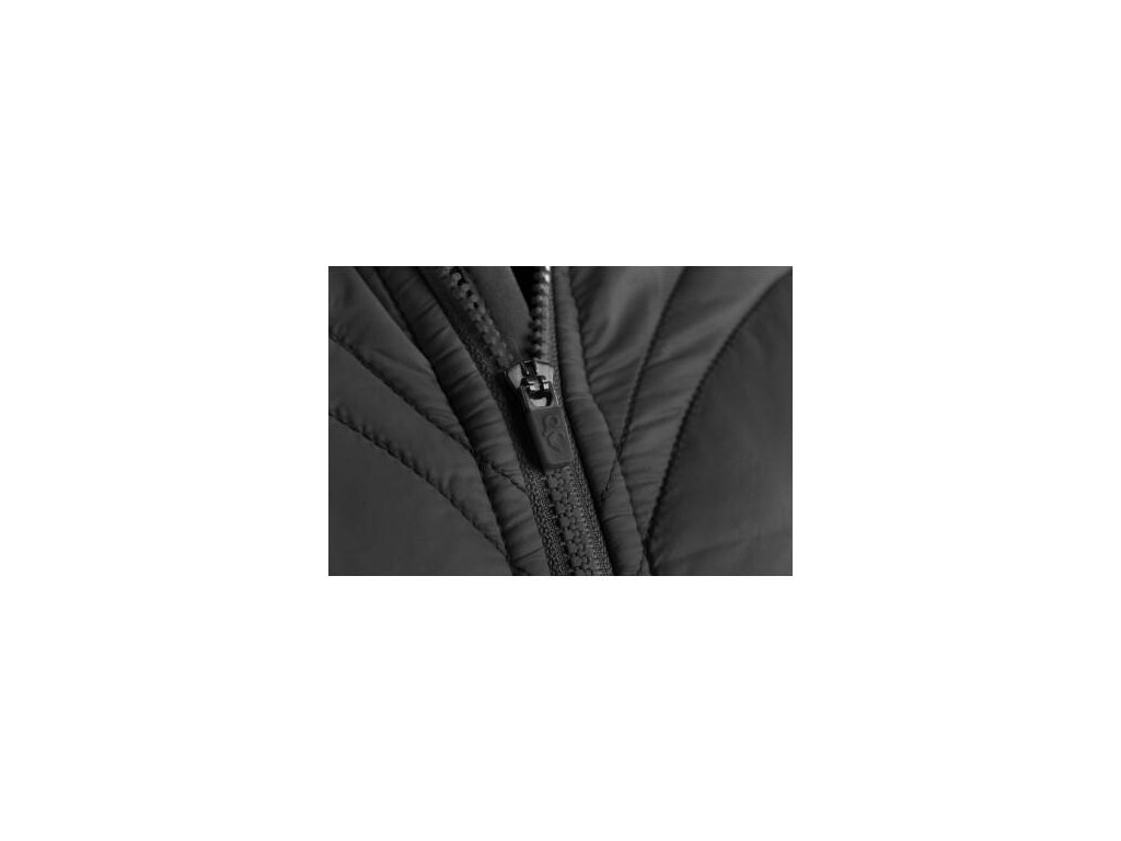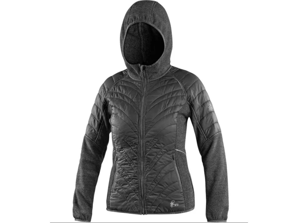 Dámská vycházková bunda z kombinovaných materiálů. Prošívaná část je lehce zateplená, zatímco kapuce, boky a rukávy jsou z příjemné pleteniny. Bunda má 2 boční kapsy na zip, zipovou ventilaci na zádech a reflexní doplňky. Pas a rukávy jsou ukončeny pružnou gumičkou.