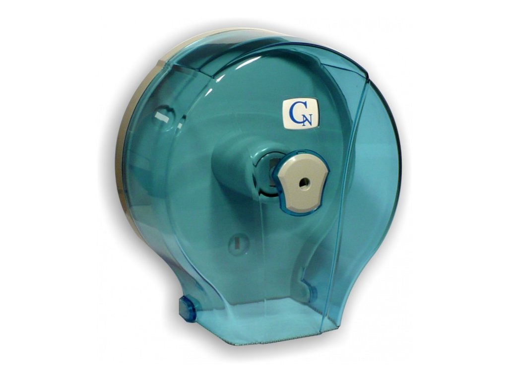Zásobník WC papíru CORMEN Jumbo 190 modrý MJ1T Nástěnný zásobník na role toaletního papíru o průměru max. 20 cm a šířce 10 cm. Vyroben je z bílého ABS plastu se světle šedou základnou. Lze montovat na vruty i samolepky. Vybaven průzorem pro stav papíru a klíčkem pro zamknutí.