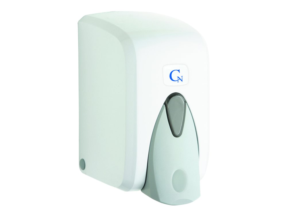 Nástěnný dávkovač na tekuté mýdlo s obsahem zásobníku na dolévání 500 ml. Jedna dávka obsahuje cca 1ml, dávkovač pojme 500 dávek mýdla. Je vyroben z bílého ABS plastu s šedivým tlačítkem v kompaktním provedení. Lze montovat na vruty i samolepky.