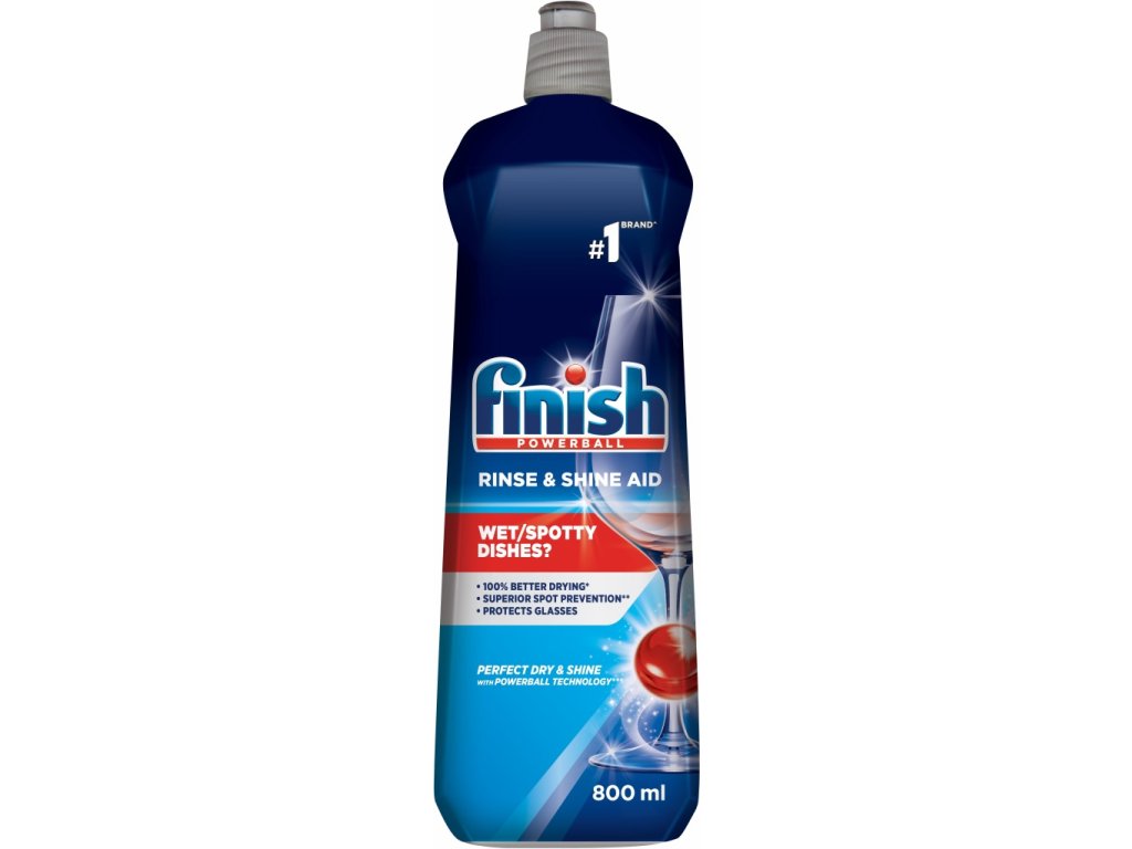 S naším prostředkem na oplachování Finish® Rinse Aid® si užijete nablýskaných talířů a ochrany proti skvrnám a povlaku (v porovnání s pouhým mycím prostředkem). Ve spolupráci s mycím prostředkem smyje odolné zbytky jídla a zbaví vás skvrn a povlaku.
