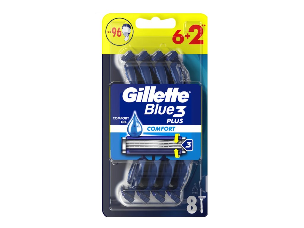 Gillette Blue3 pánská holítka Comfort vám poskytne až 10 pohodlných oholení. Gillette Blue3 Comfort to umožňuje díky 3 chromovaným břitům citlivým k pokožce a výkyvné hlavě, která se přizpůsobuje konturám obličeje. Vylepšený zvlhčující pásek s technologií Comfortgel, který se aktivuje v kontaktu s vodou, zajišťuje maximální komfort. Holítko má rukojeť z protiskluzové pryže, takže umožňuje skvělou kontrolu a ovladatelnost, a snadno oplachovatelné břity.