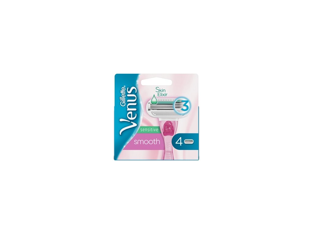 Gillette Venus náhradní holicí hlavice Sensitive Smooth k dámskému holicímu strojku Gillette Venus Sensitive Smooth mají 3 břity a jsou navržené pro ženy s citlivou pokožkou. Obsahují zvlhčující pásek SkinElixir a 3 břity kopírující křivky těla, tím zajišťují dokonale hladké oholení. Zažijte až 0% podráždění a až 100% hladkou pokožku od značky Gillette Venus!