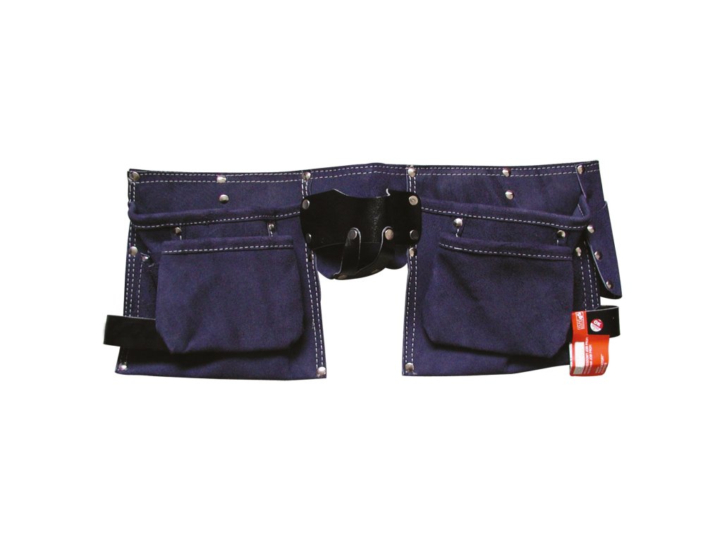 Pás na nářadí kolem pasu. Dvě velké kapsy pro uložení drobného nářadi, malé kapsy na šroubky, vruty, hřebíky. Oko na zavěšení kladiva.