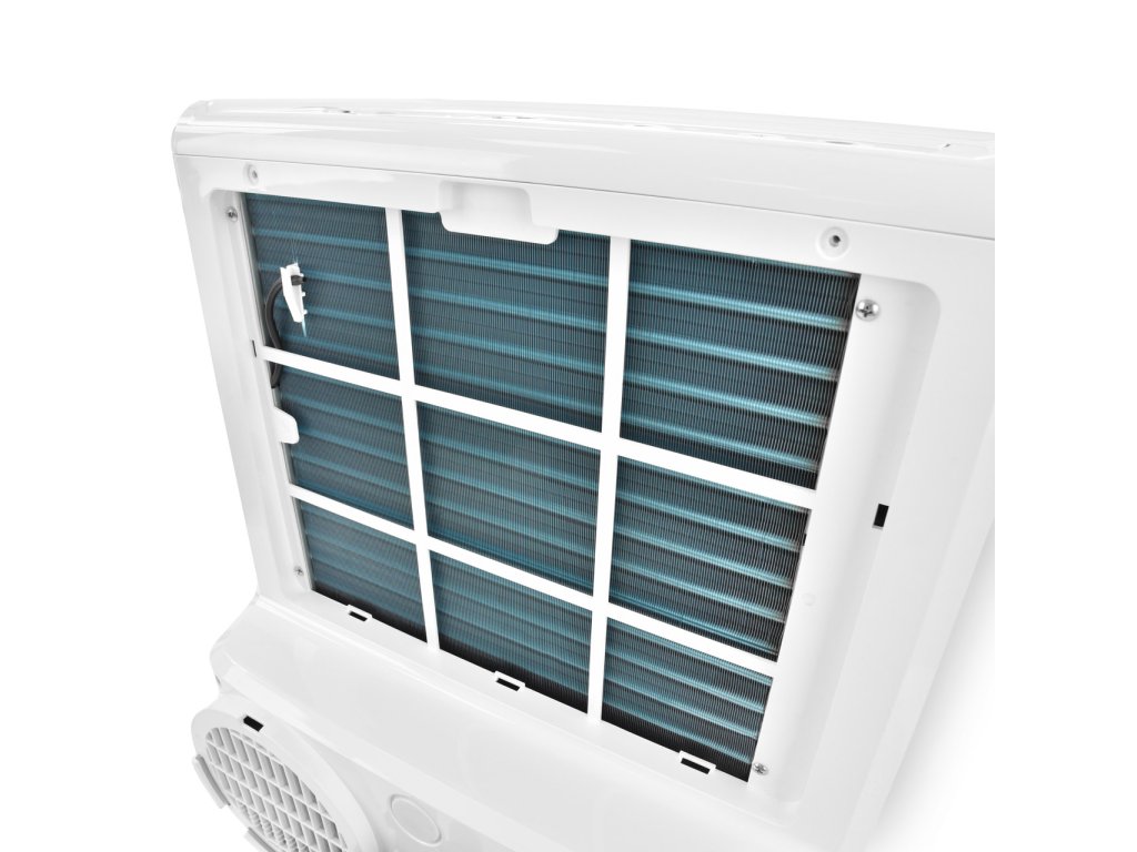 Výhody: = Mobilní klimatizace se třemi funkcemi (3V1): chlazení, odvlhčování, ventilátor = Chladící výkon 12000 BTU = Příkon 1337 W / 5,9 A = Ekologicky šetrná chladící směs R290 = Odvětrávání horkého vzduchu pomocí 1,5 m dlouhé teleskopické hadice = Dálkové ovládání součástí balení = Volitelná rychlost větráku = Časovač = Bez nutnosti doplňování chladící směsi = Průtok vzduchu 410 m3 = Displej s podsvícením = 4 otočná kolečka pro snadnou manipulaci = Moderní design = Inovativní systém proudění vzduchu směrovatelným větracím otvorem na horní straně = Naměřená hladina akustického tlaku v místě obsluhy: 65 dB(A) DALŠÍ VÝBAVA: = volitelná rychlost větráku = LED displej = 360° otočná kolečka Prostor chlazení: 70 m3. Tato hodnota se může měnit v závislosti na vlivu okolního prostředí, teploty, proudění vzduchu, utěsnění místnosti, umístění místnosti v domě, tepelné izolace, orientace místnosti dle světových stran a dalších faktorů.