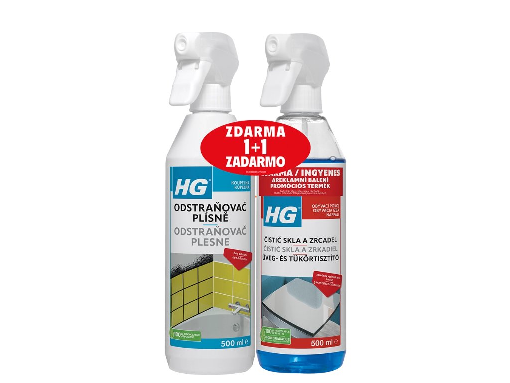Nizozemský výrobce špičkových čisticích přípravků společnost HG nyní přichází se zvýhodněnou sadou, která obsahuje odstraňovač plísně a čistič skla a zrcadel. Odstraňovač plísně HG je speciálně vyvinutý pro likvidaci plísní, které často vznikají v silikonových spárech mezi vanou a zdí, ve sprchovém koutě a na omítce. Vysoce účinný prostředek vás spolehlivě zbaví plísní a černých skvrn a pomůže udržet koupelnu či jakékoli další prostory čisté a zdravotně nezávadné. Díky praktickému spreji je aplikace přípravku velmi přesná, snadná a rychlá. Skvělý pomocník v boji s nadměrnou vzdušnou vlhkostí a vlivy počasí.