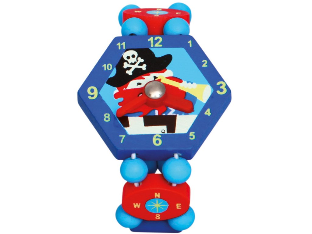 Nezbytný doplněk mladých pánů, hodinky s pirátem, modré, rozměry: 8x2,5x4 cm.