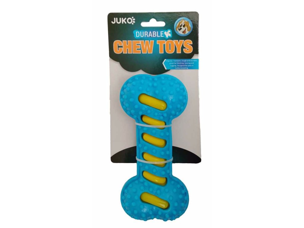Kost termoplastická guma (TPR) 9x19 cm Měkká hračka pro psy v oblíbeném tvaru kosti . Při zmáčknutí nebo otočení píská. Termoplastická guma/pryž je je polymerní látka. Je netoxická, hypoalergenní a neobsahuje ftaláty. Používá se ve spoustě výrobků (např.kartáčky na zuby, hračky pro děti). Upozornění: Stejně jako u všech hraček je doporučeno na zvíře při hře dohlížet. Pravidelně kontrolovat, zda hračka nemá vady, které při používání mohou vzniknout a v případě, že nějakou vadu objevíte, odstraňte hračku z dosahu zvířete dříve, než si ublíží. Kolekce JUKO navazuje na původní úspěšnou řadu Smarty. ILUSTRATIVNÍ FOTODoplňkové parametry