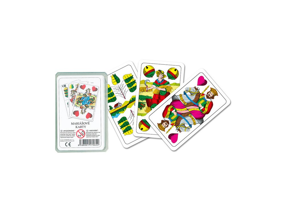 Klasické mariášové karty. Karty jsou v plastové krabičce a určitě se s touto hrou nebudete nudit ani Vy.