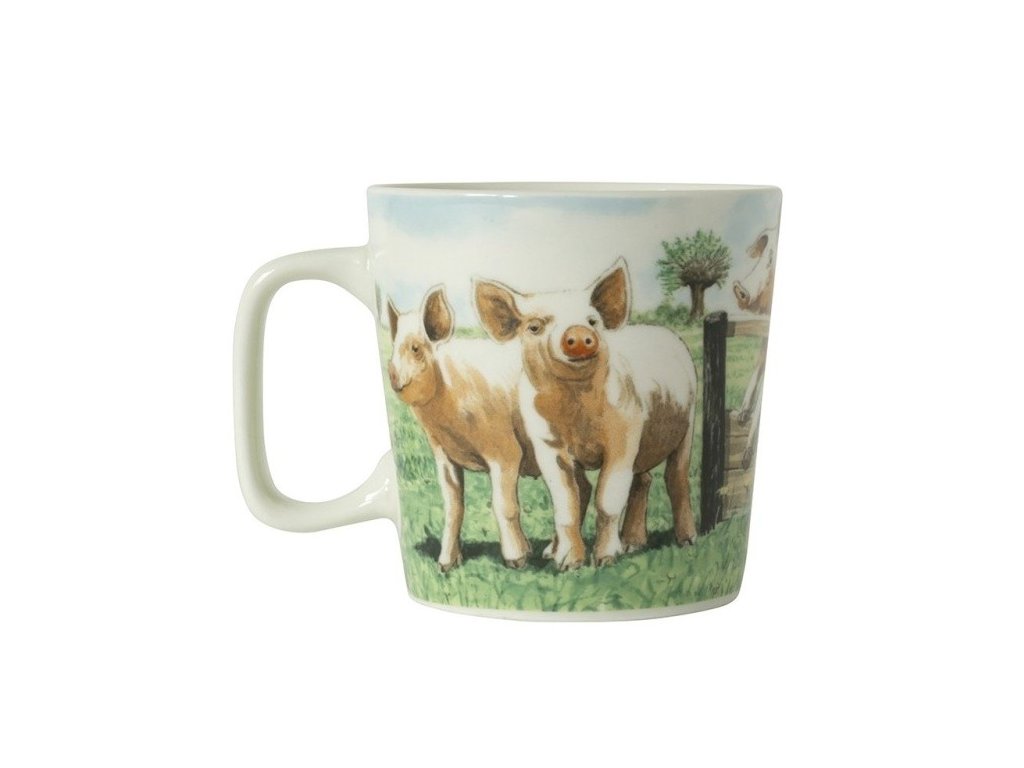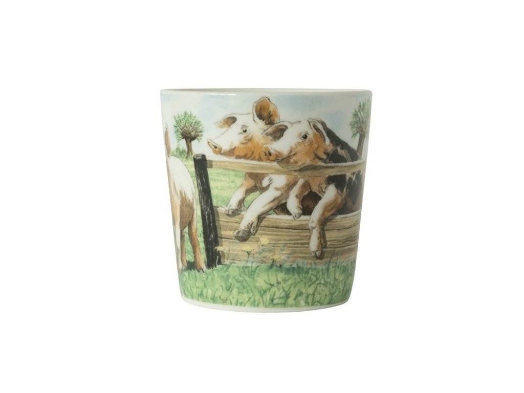 Porcelánový hrnek je ozdobený obrázky prasátek od holandského malíře Wiebe van der Zee. Tento porcelánový hrneček je možné používat v mikrovlnné troubě a mýt v myčce.