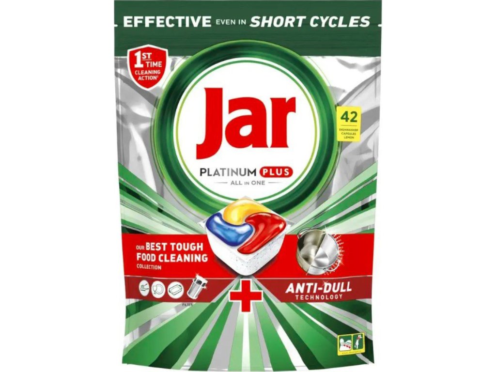 Kapsle Jar Platinum Plus zanechávají nádobí čisté jako nové, zaručují nejlepší čisticí účinky od Jaru, a dokonce pomáhají odstraňovat zašedlost vznikající časem a obnovují původní lesk nádobí.