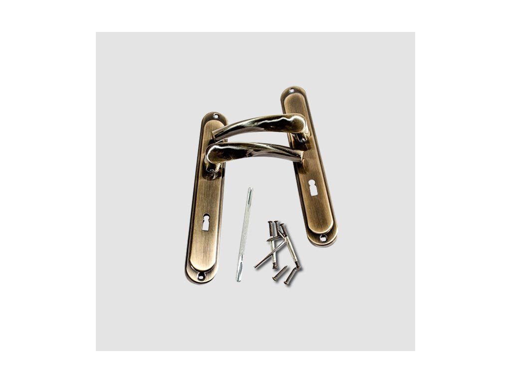 Kompletní kování na jedny dveře včetně spojovacího materiálu.