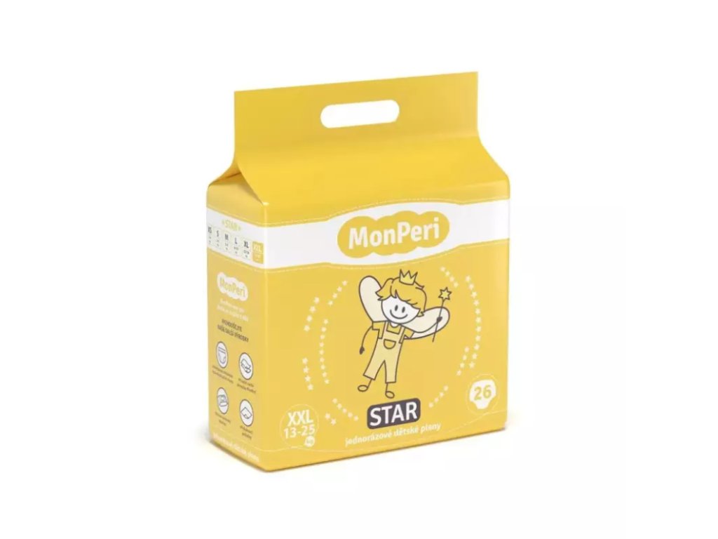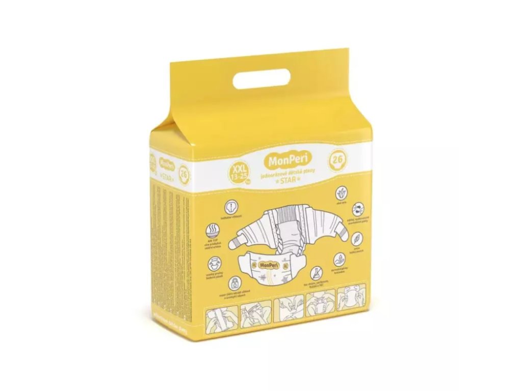 Dětské pleny MonPeri Star XXL 13-25 kg jsou perfektně savé a velmi šetrné k dětské pokožce. Tyto hypoalergenní plenky bez parfemace disponují prodyšnou AIR TOP vrstvou, což umožňuje pokožce volně dýchat. Zvolte tu nejšetrnější péči z přírodních materiálů již od narození. Plenka disponuje širokým pružným pasem, který zabraňuje protékání plenky v oblasti beder. Speciální dvojité manžety kolem nožiček udrží obsah pleny na svém místě. Nebrání volnému pohybu dítěte.