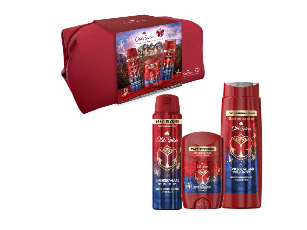 Old Spice Tomorrowland Xmas dárková sada v tašce je dokonalým dárkem pro každého muže, který ocení styl, svěžest a praktičnost. Tato limitovaná edice obsahuje vše, co potřebujete pro každodenní péči, a navíc přináší exkluzivní vůni inspirovanou festivalovou atmosférou Tomorrowlandu. Sada zahrnuje tuhý deodorant, deodorant ve spreji a sprchový gel, vše zabaleno v elegantní a znovupoužitelné kosmetické taštičce.