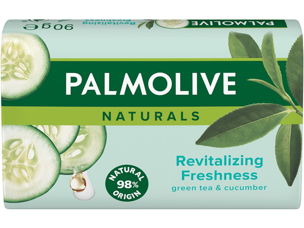 Tuhé mýdlo Palmolive Naturals "Revitalizing Freshness" s výtažky ze zeleného čaje a okurky. Osvěžující pocit pro vaši pokožku.