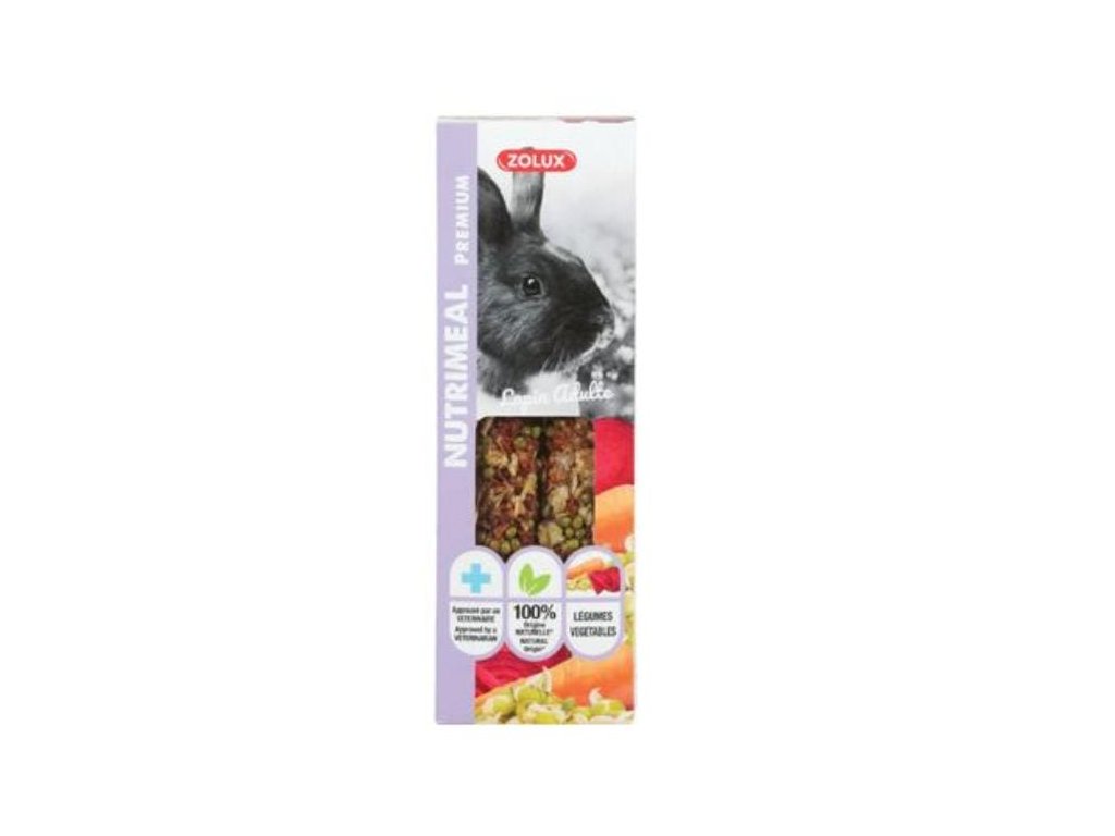 Tyčinky pro králíky ze surovin 100 % přírodního původu, bez přísad a přidaného cukru.