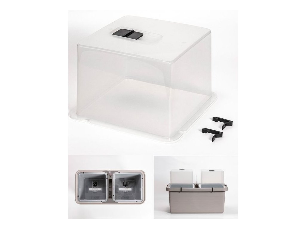 Tato praktická vychytávka ochrání sazeničky před mrazíky či povětrnostními výkyvy. Vyvinutá pro kombinaci s velkoobjemovými truhlíky Berberis, jednoduše doplněk, který vám nesmí doma chybět. Uskladnění je hračka, poklop na zimu uložíte do samozavlažovací vložky truhlíku. Ani centimetr tak nepřijde na zmar! Rozměry: v. 22 cm x š. 33 cm x celková výška (včetně truhlíku Berberies) 55 cm.
