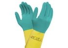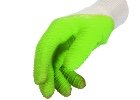 Šité bavlněné rukavice s pružným nápletem na zápěstí, polomáčené ve žlutém přírodním latexu, protiskluzná úprava povrchu dlaně a prstů.