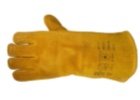 Rukavice z hovězí štípenky s bavlněnou podšívkou v dlani, hovězí štípenkou na hřbetu, s manžetou ze stejného materiálu v délce 35 cm
