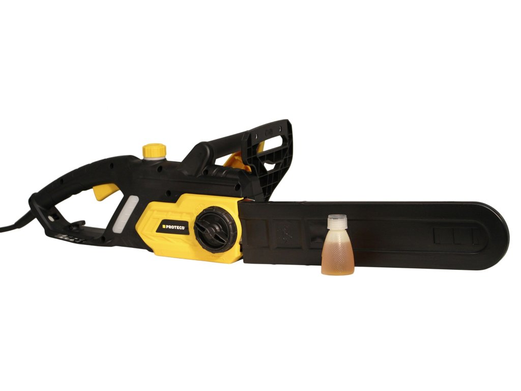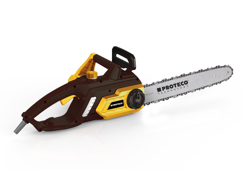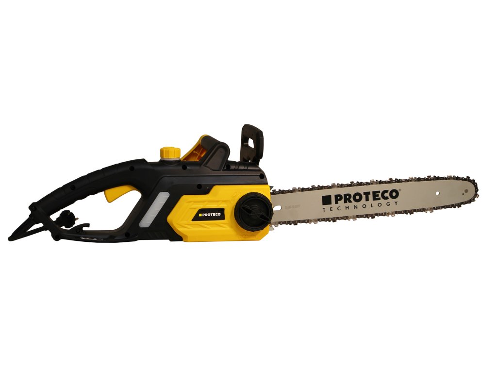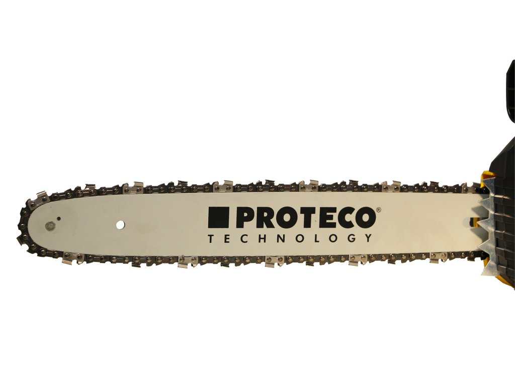 Elektrická řetězová pila Proteco s výkonným motorem 2 400 W a řídící elektronikou pro plynulý náběh do konstantních pracovních otáček. Konstrukce pily nabízí sadu standartních bezpečnostních prvků (doběhovou brzdu, bezpečnostní brzdu) a automatické mazání řetězu. Řetěz pily má 57 zubů. Pila má dále FASTFIX - výměnu a napínání řetězu bez použití nástrojů a SOFTSTART - omezení rozběhového proudu pro šetrné uvedení stroje do provozu a pozvolný náběh do pracovních otáček. Na pile je přehledný olejoznak pro kontrolu stavu oleje v nádržce.