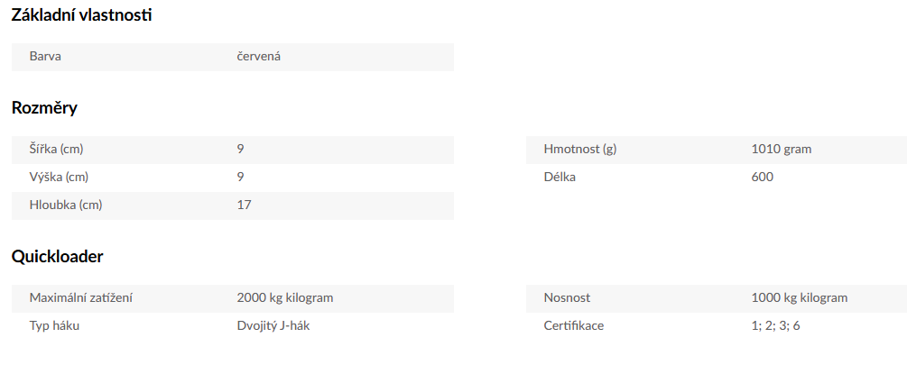 • Dvojité „J“ háky.