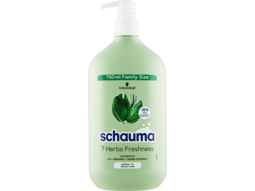 Šampon Schauma 7 Herbs Freshness – s organickým extraktem ze 7 bylin pro normální až mastné vlasy.
