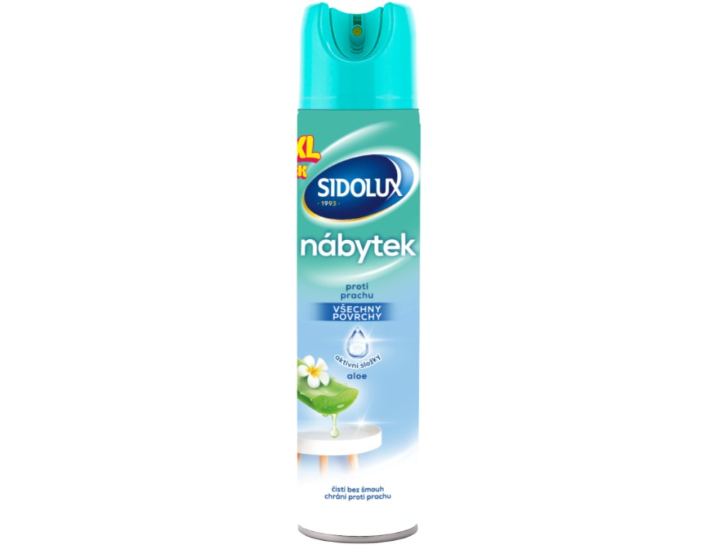 SIDOLUX proti prachu na všechny povrchy. Dokonale čistí skleněné a plastové povrchy, nábytek ze dřeva, lamina a jiné různé povrchy v domácnosti. Díky aktivním složkám čistí povrch odstraněním prachu, šmouh, otisků prstů. Zanechává svěží vůni.