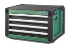 Kovový montážní vozík na nářadí se 7 zásuvkami. Dvě pevná a dvě otočná kolečka s poziční brzdou. Zásuvky na kuličkových ližiskách lze vysunout 40cm. horní pracovní plocha i zásuvky jsou vypodloženy protiskluzovou podložkou. Držadlo pro manipulaci s vozíkem lze umístit z pravé nebo levé strany. uzamykatelné zásuvky. 5 nízkých a 2 vysoké zásuvky.