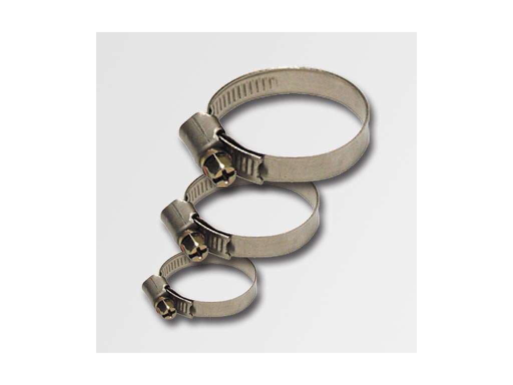 Šroubovací hadicé spony pro montáž hadic. Odolné velkému zatížení, lemované okraje zabraňují poškození hadice.