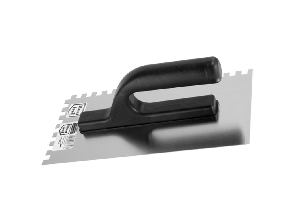 Nerezové hladítko s PVC rukojetí, vhodné pro nanášení lepidel, malty atd.
