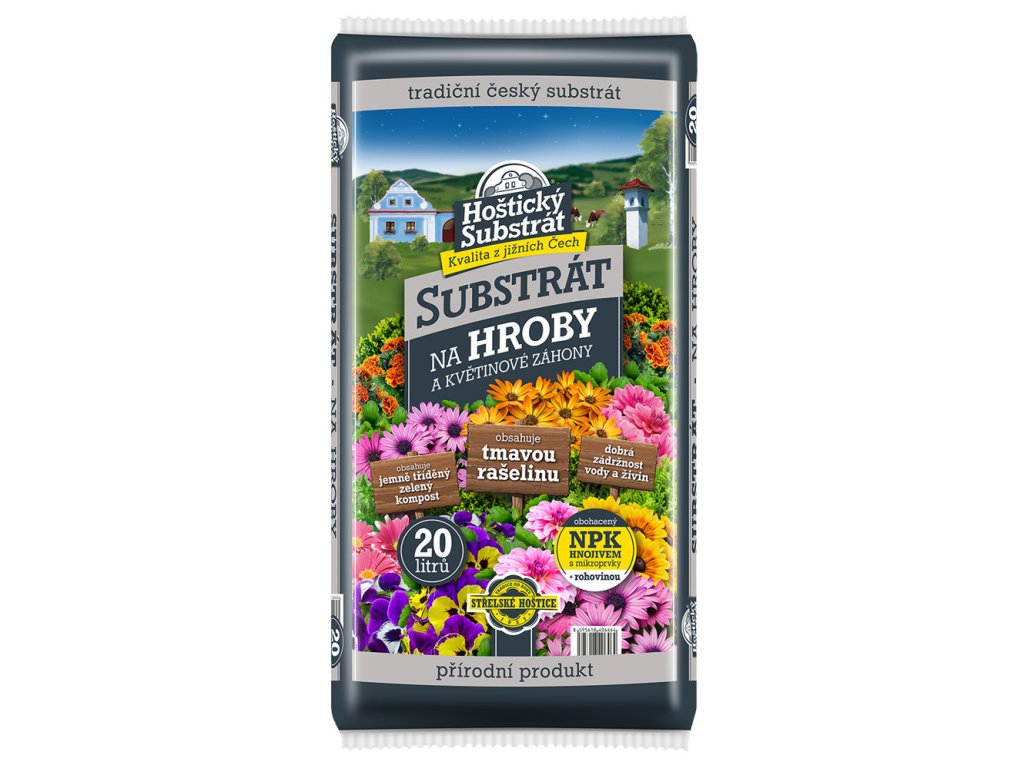 HOŠTICKÝ SUBSTRÁT NA HROBY je určen k zakrytí ploch hrobu či jiných míst na hřbitovech z dekorativního důvodu a nebo slouží ke zlepšení stávající pudy či k výsadbě nových rostlin.