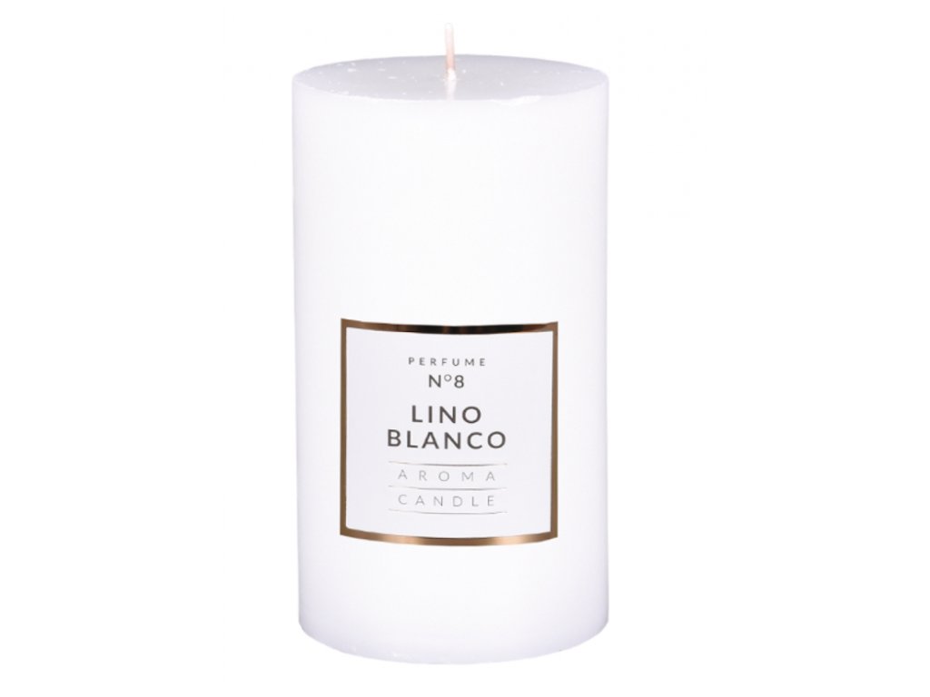 Bílá svíčka ve tvaru válce o průměru 7 cm a výšce 13 cm. Doba hoření: 102 hod. Vůně: čísté prádlo. Využití do různých interiérových dekorací.