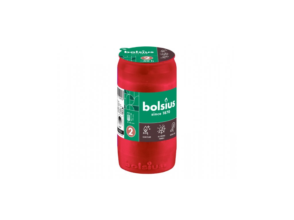 Náhradní náplň do hřbitovních lamp. Silný, jasný a stabilní plamen za jakéhokoliv počasí. Bez sazí a kouře. Náplň vyrobena ze směsi olejů, šetrně k životnímu prostředí. Má certifikát bezpečnosti RAL. Doba hoření: 40 hodin. Hmotnost: 90 g. Rozměry: průměr 4,8 cm, výška: 9,5 cm. Barva: červená.