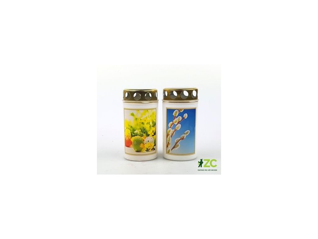 Svíčka hřbitovní s víčkem 100g - bílá, mix velikonočních motivů