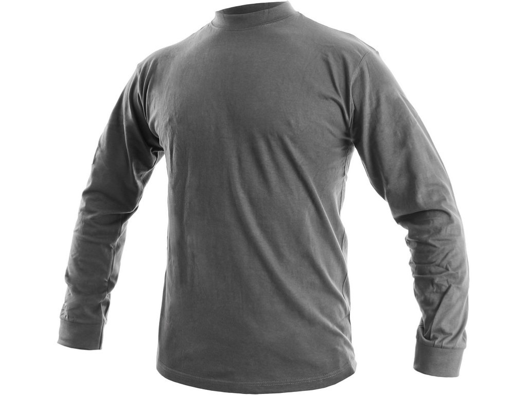 Pánské tričko tričko s dlouhým rukávem, kulatý průkrčník, zdvojené švy, zpevňující krční a ramenní páska, trup je po stranách beze švů, rukávy zakončené manžetou, finální silikonová úprava materiálu, která zajišťuje vyšší měkkost a pružnost, rozměrovou stálost a omezuje žmolkovatění.