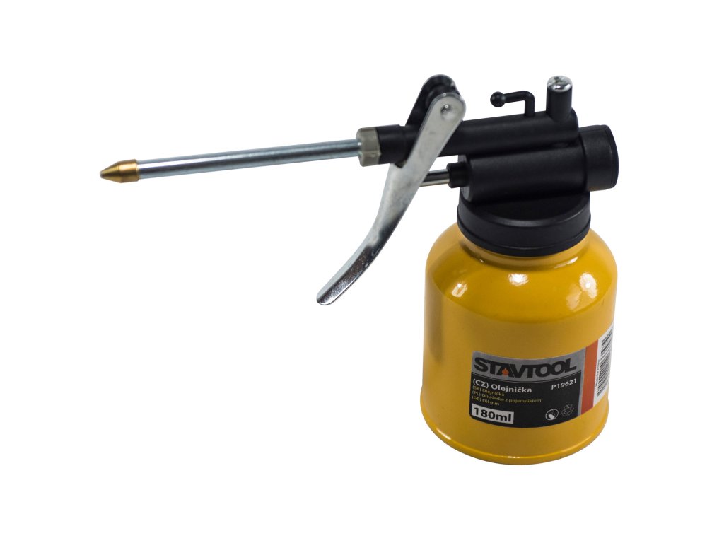 Celokovová olejnička s ručním pumpováním je ideální pro mazání mechanických přístrojů.